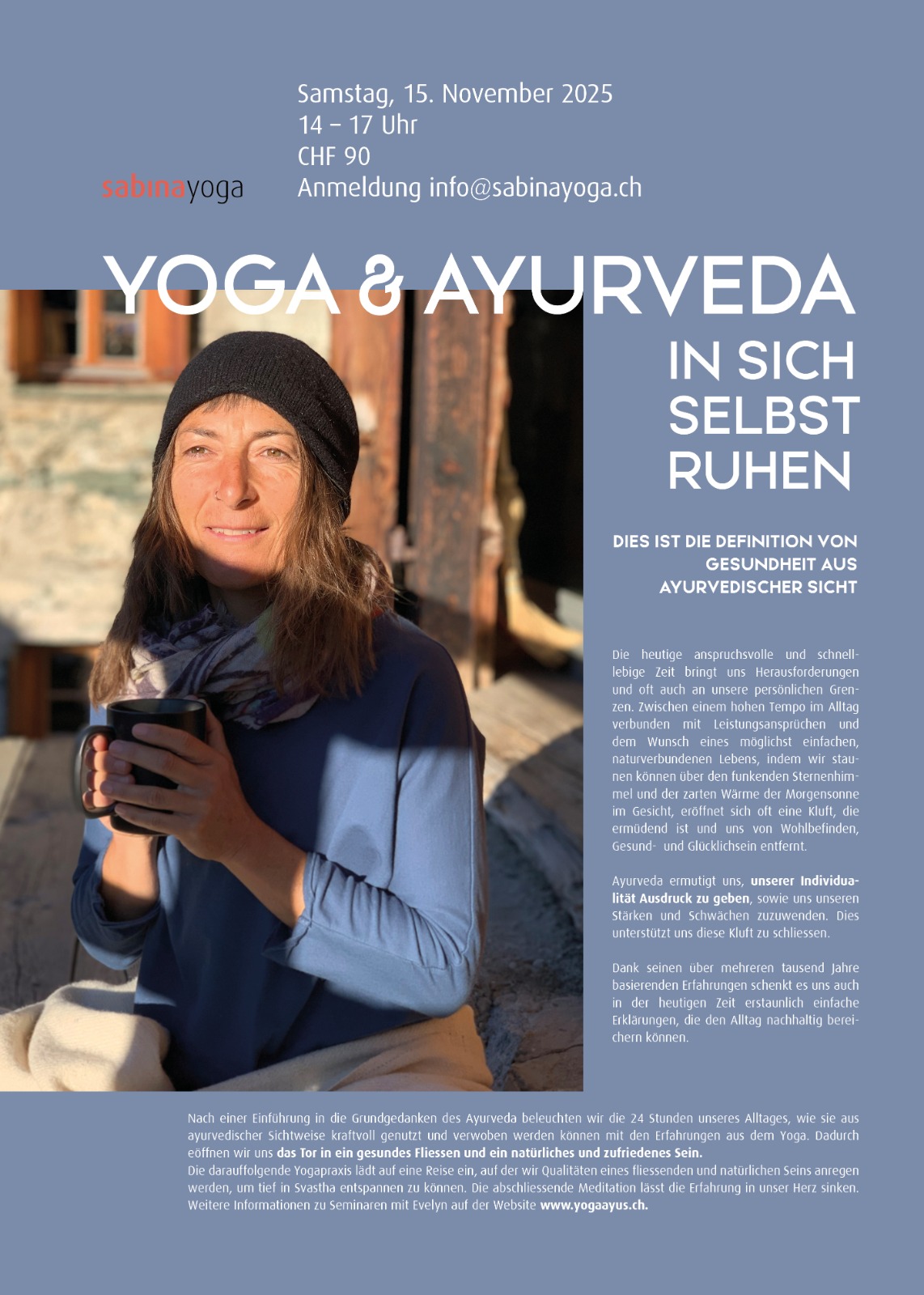 In Freude und Dankbarkeit habe ich in den vergangenen zwölf Jahren mit «Sabinayoga» die Impulse des Lebens mit der Yogapraxis verbunden und Momente der wahrhaftigen Begegnung mit mir selbst erfahren – Momente, die ich in meinen Yogaklassen weiterhin auch anderen ermöglichen will.